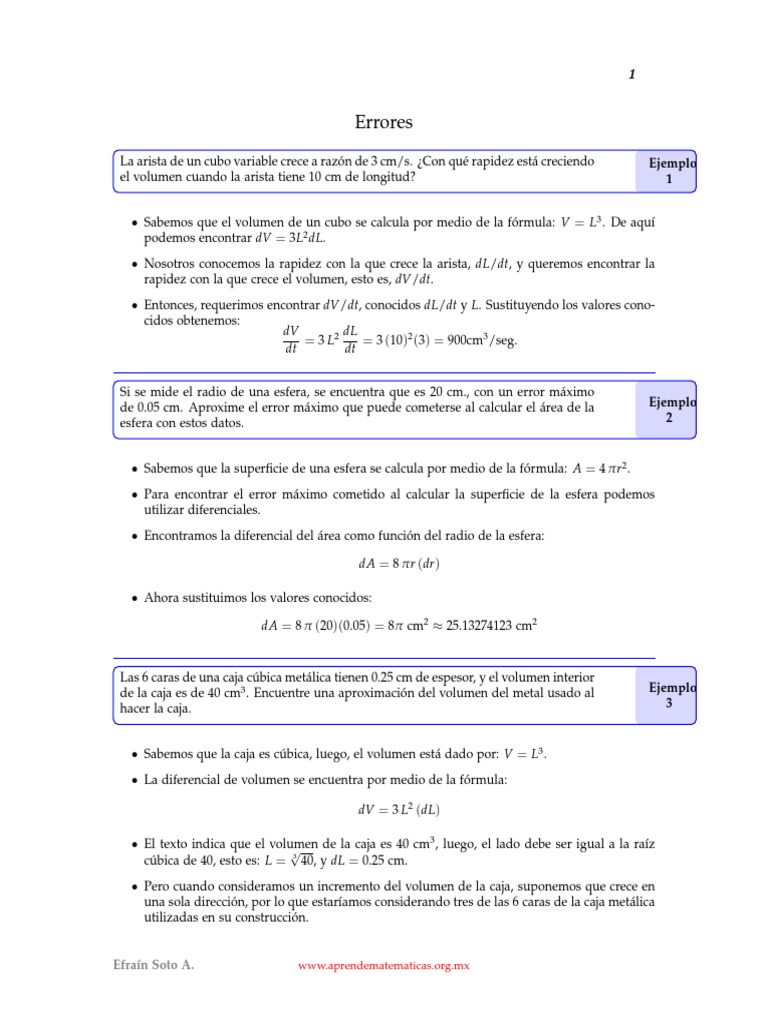 de 0.05 cm. Aproxime el error mximo que puede cometerse al calcular el rea de la Ejemplo