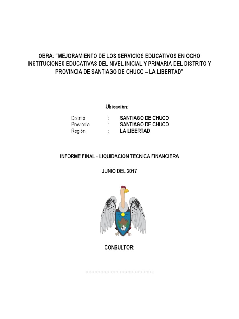 Vctor Tomas Ponce Chunga, informa que la obra MEJORAMIENTO DE LOS SERVICIOS EDUCATIVOS EN