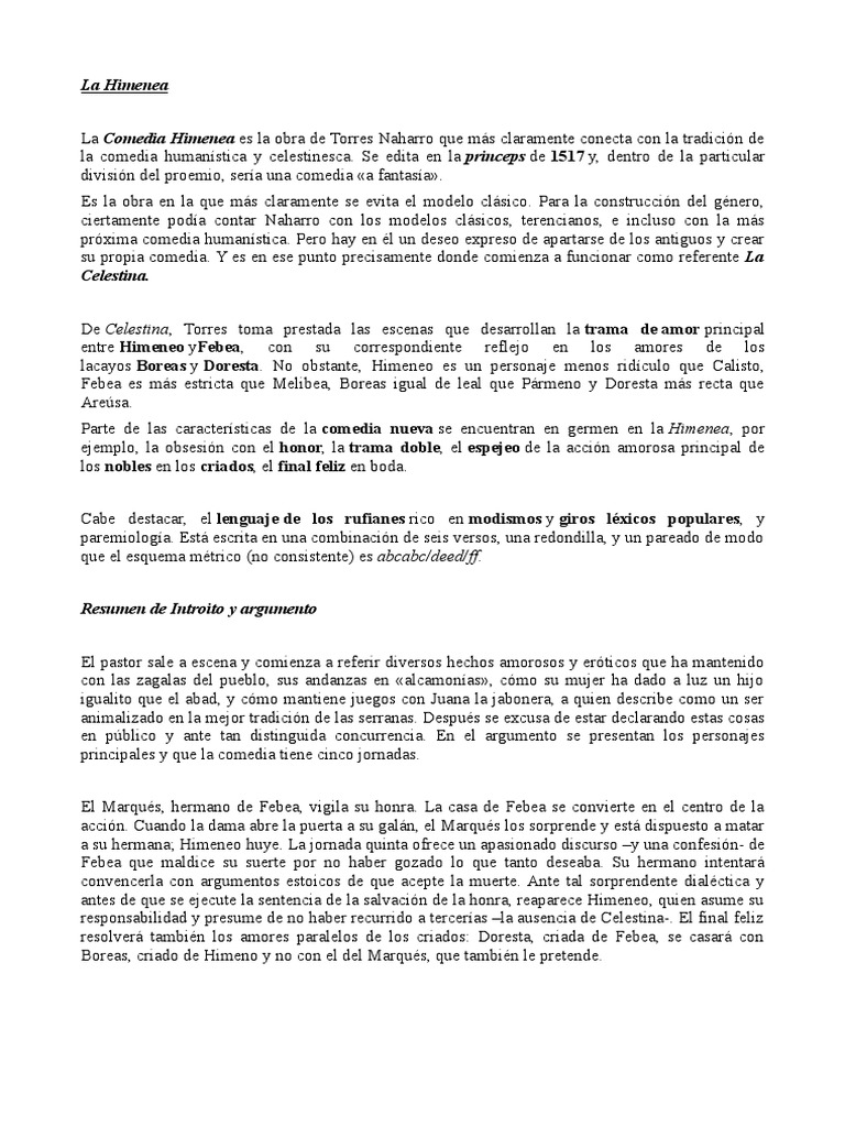 La Comedia Himenea es la obra de Torres Naharro que ms claramente conecta con la tradicin de