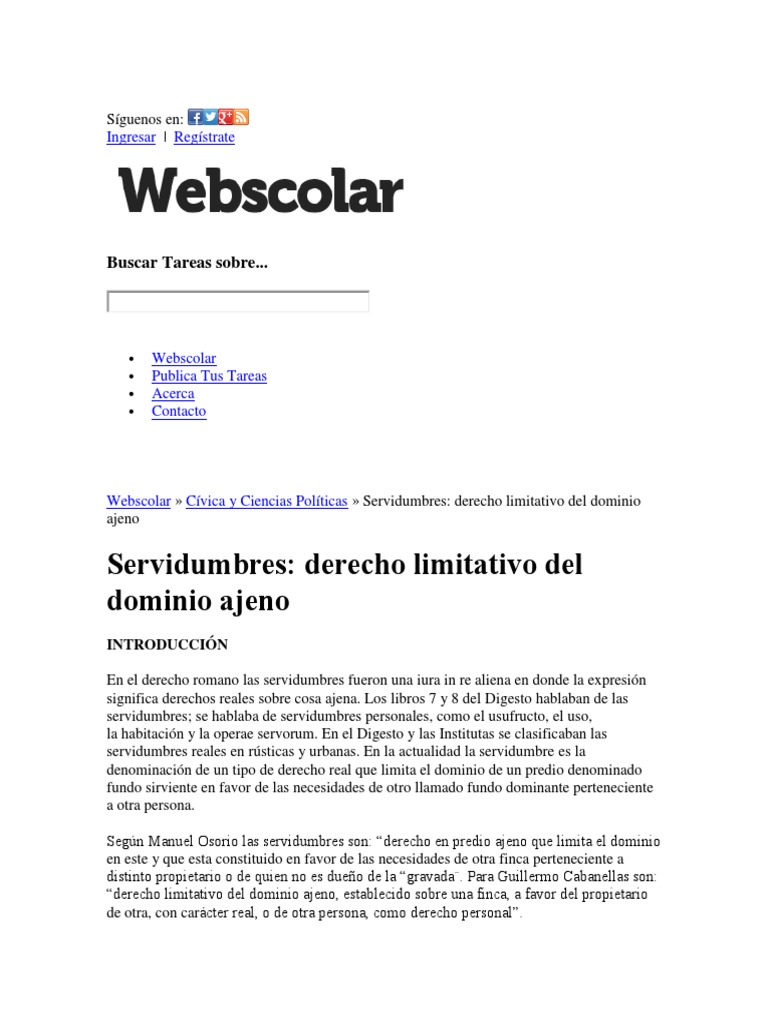 ___________.WEBSCOLAR. Servidumbres: derecho limitativo del dominio ajeno.