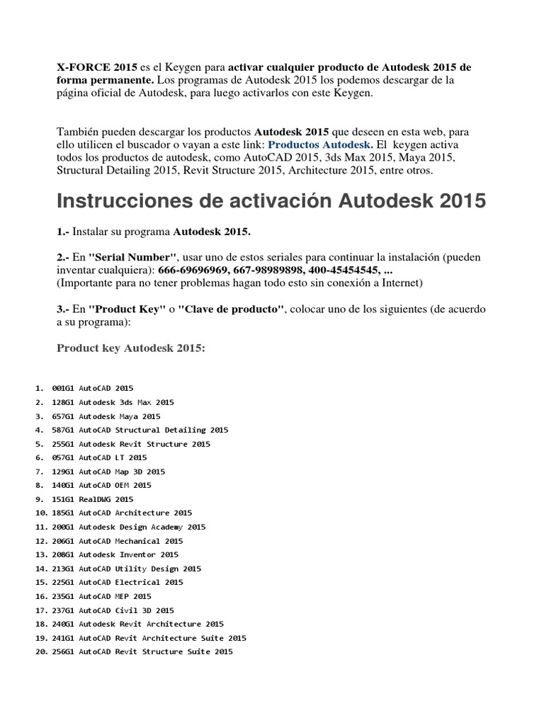 X-FORCE 2015 es el Keygen para activar cualquier producto de Autodesk 2015 de