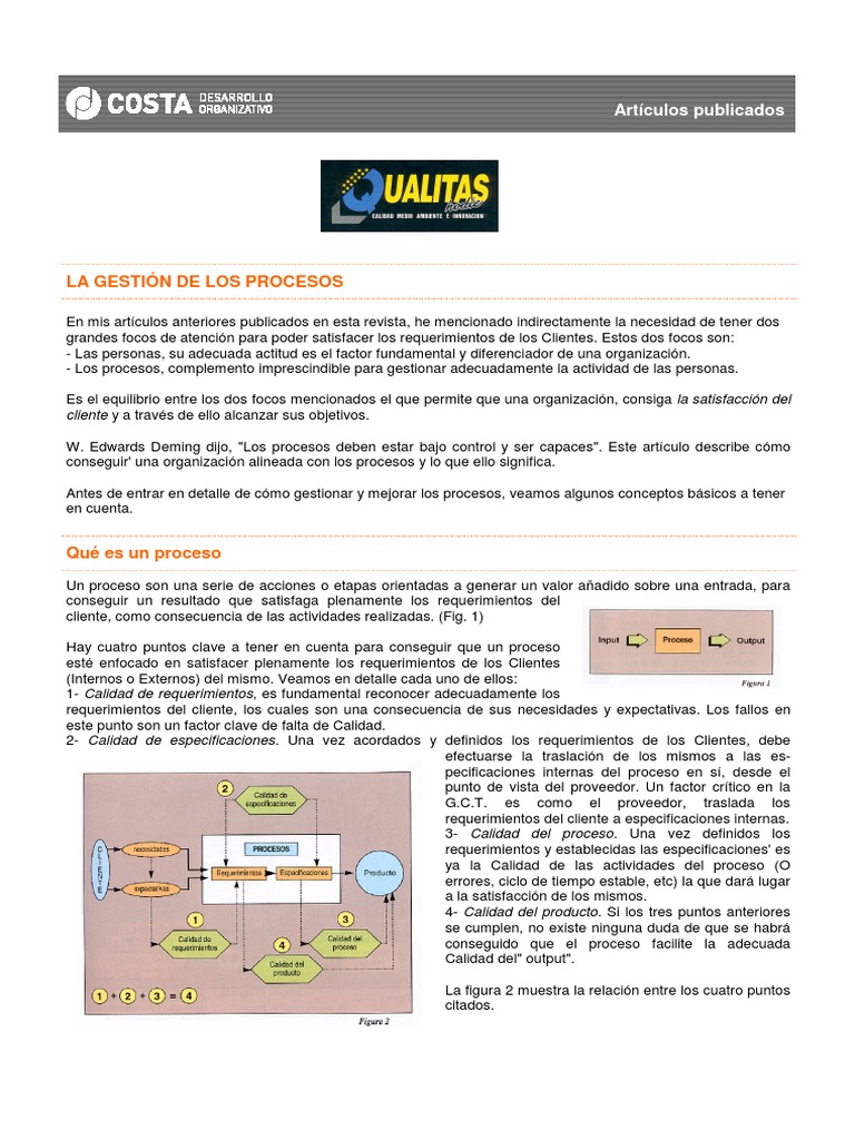 No obstante lo citado, el situar los procesos en control no es suficiente para asegurar una correcta gestin y