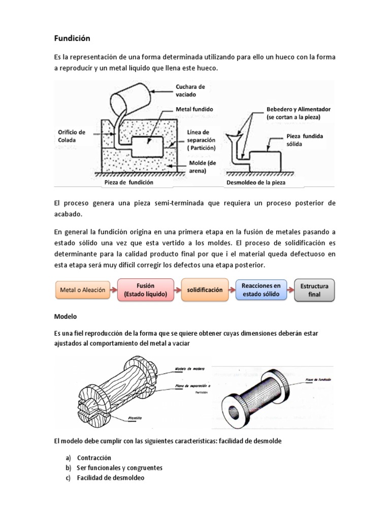 En general la fundicin origina en una primera etapa en la fusin de metales pasando a