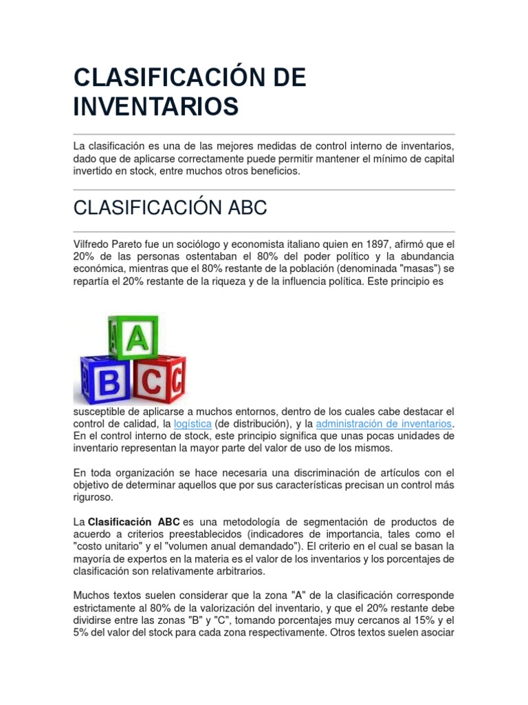 La clasificacin es una de las mejores medidas de control interno de inventarios,