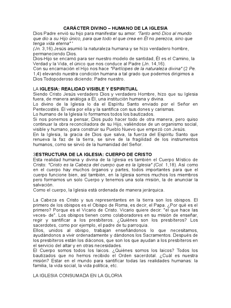CARCTER DIVINO HUMANO DE LA IGLESIA