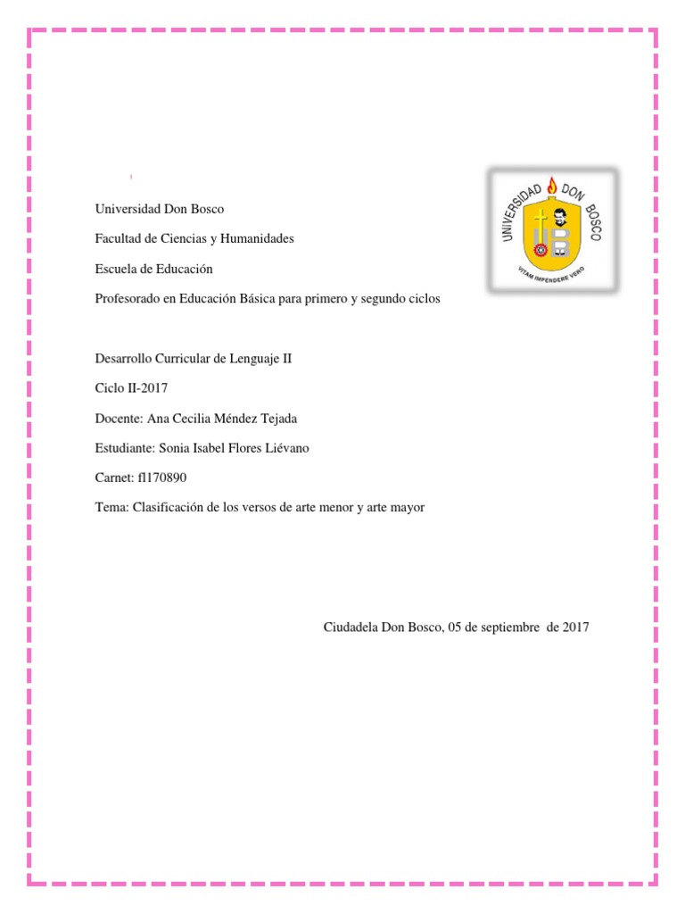 Tema: Clasificacin de los versos de arte menor y arte mayor