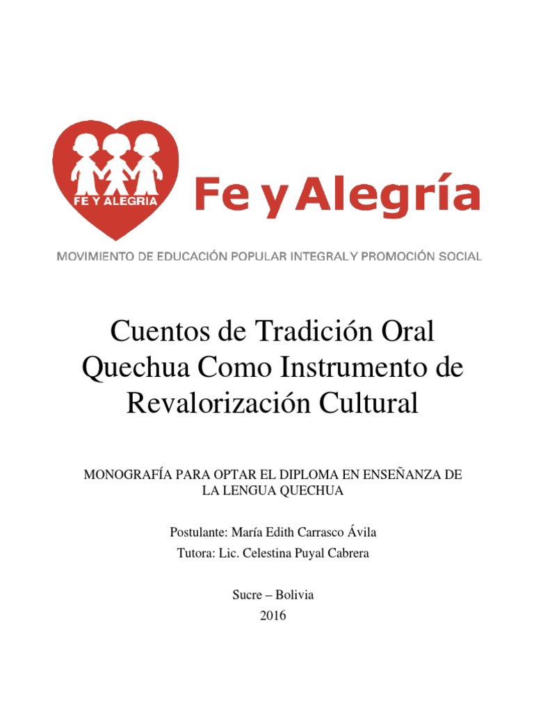 Recopilar una serie de relatos de tradicin oral en lengua quechua cuyo