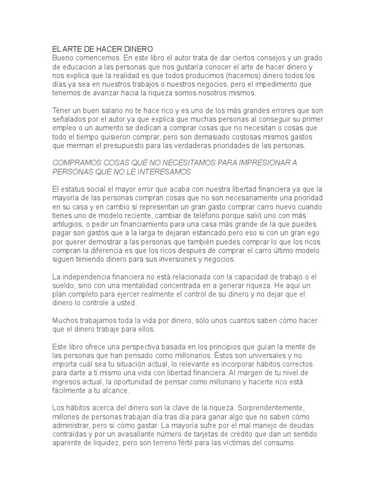 de educacion a las personas que nos gustara conocer el arte de hacer dinero y