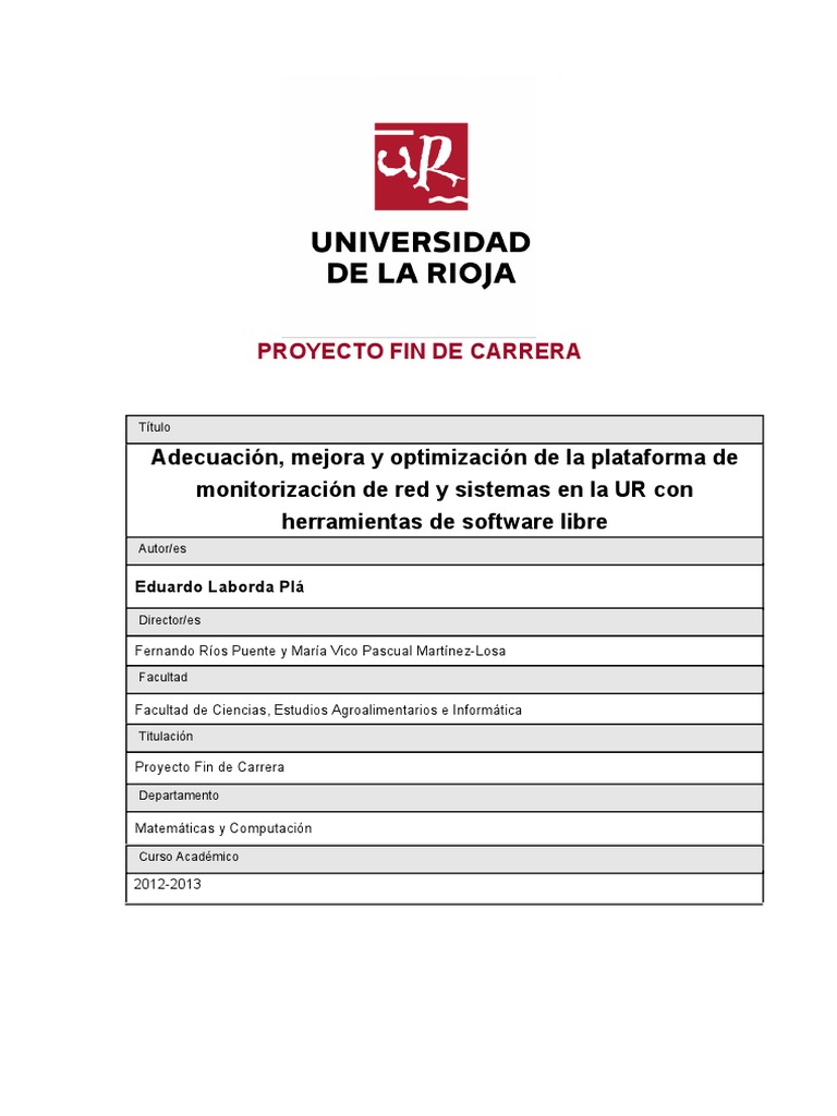 y sistemas en la UR con herramientas de software libre, proyecto fin de carrera