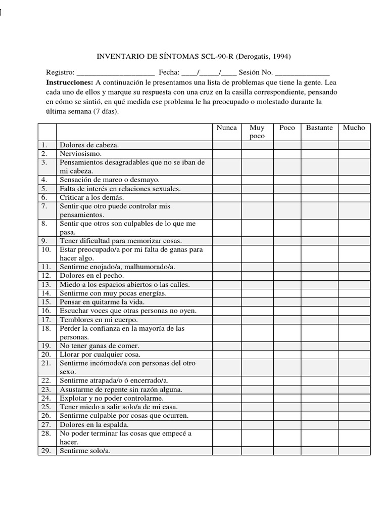 INVENTARIO DE SNTOMAS SCL-90-R (Derogatis, 1994)