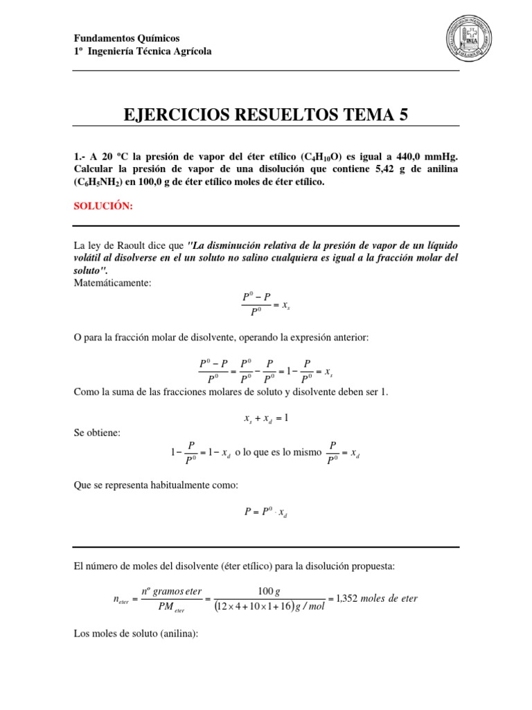 disolvente puro, en este caso el agua (17,535 Torr = mmHg). En el enunciado se nos indica