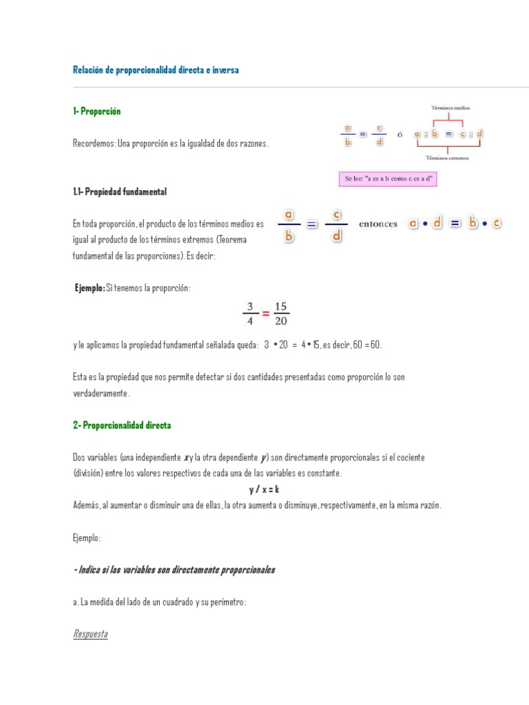 Relacin de proporcionalidad directa e inversa