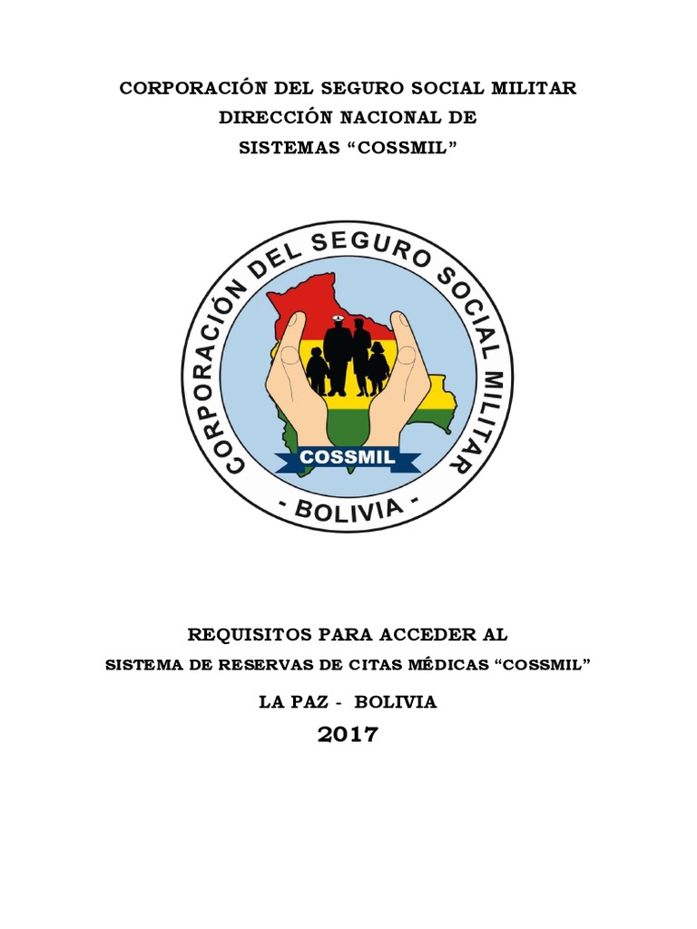 Desde la pgina Web de COSSMIL (www.cossmil.mil.bo), se muestra un enlace en el cual al