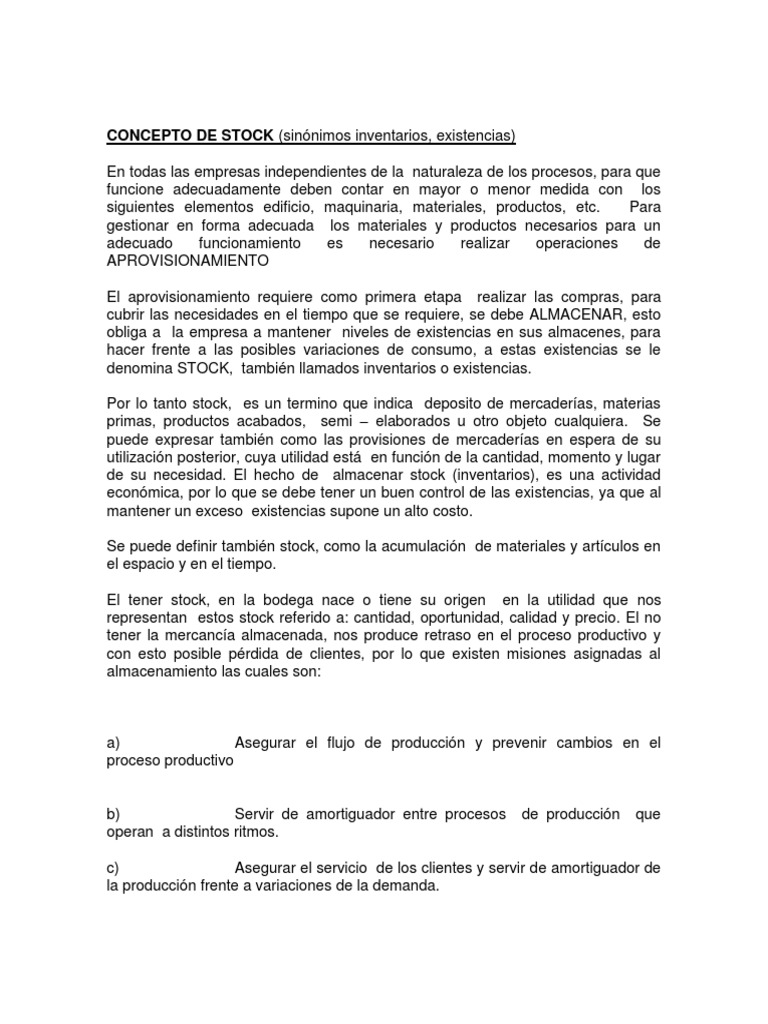 CONCEPTO DE STOCK (sinnimos inventarios, existencias)