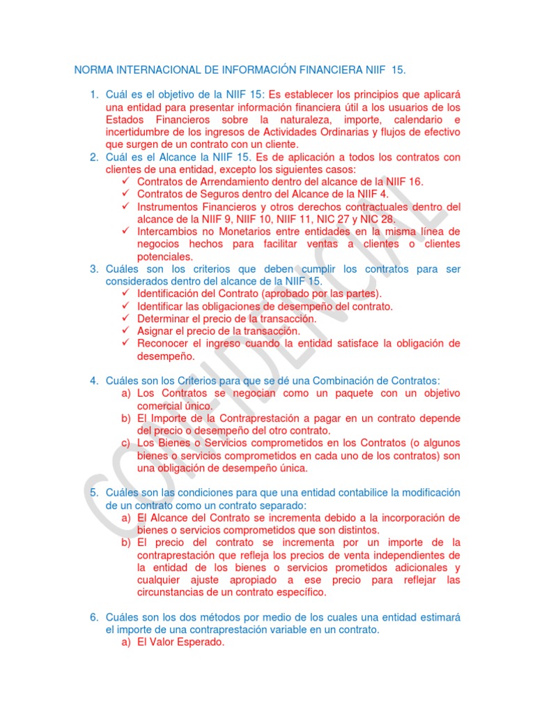 1. Cul es el objetivo de la NIIF 15: Es establecer los principios que aplicar