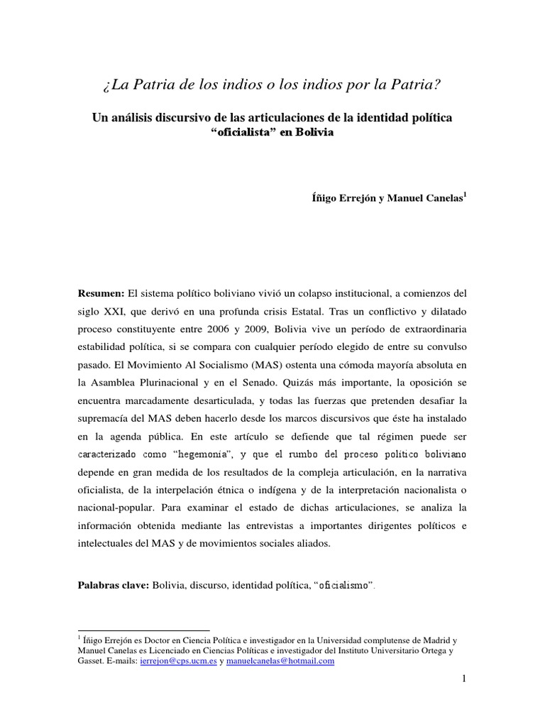 Palabras clave: Bolivia, discurso, identidad política, “oficialismo”.