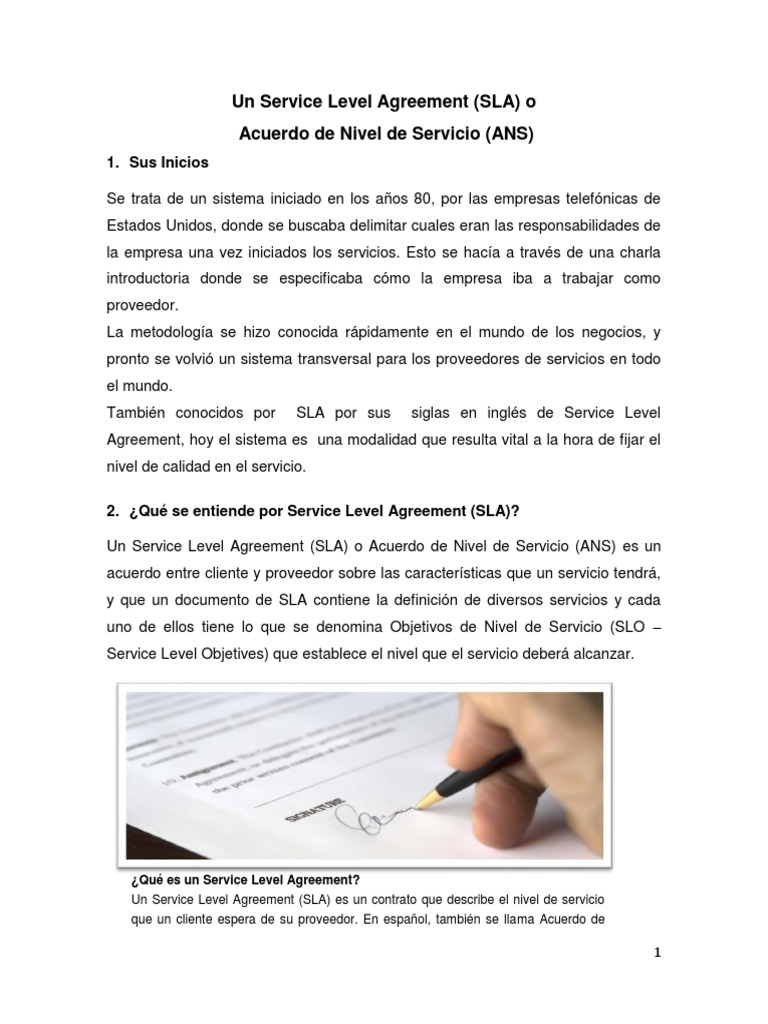 Un Service Level Agreement (SLA) o Acuerdo de Nivel de Servicio (ANS) es un