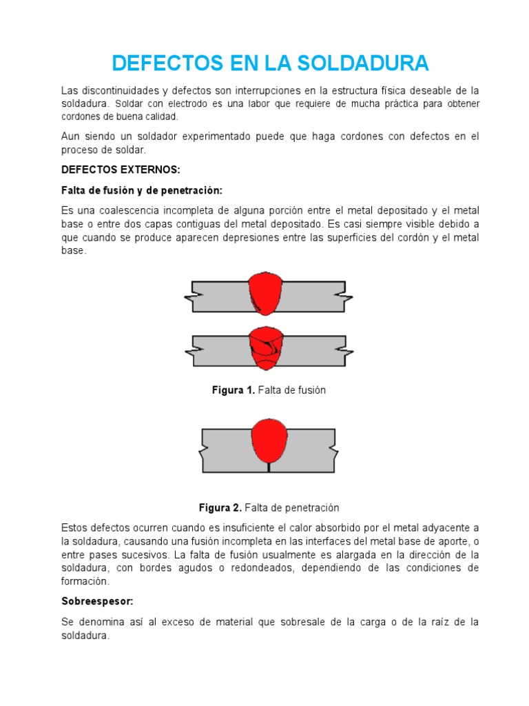En la ejecucin de soldaduras, pueden producirse diversos efectos que pueden evitarse