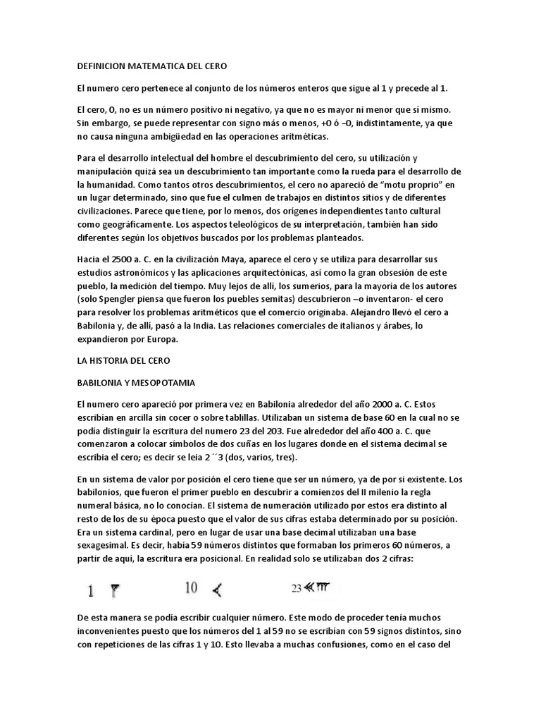 El numero cero apareci por primera vez en Babilonia alrededor del ao 2000 a. C. Estos