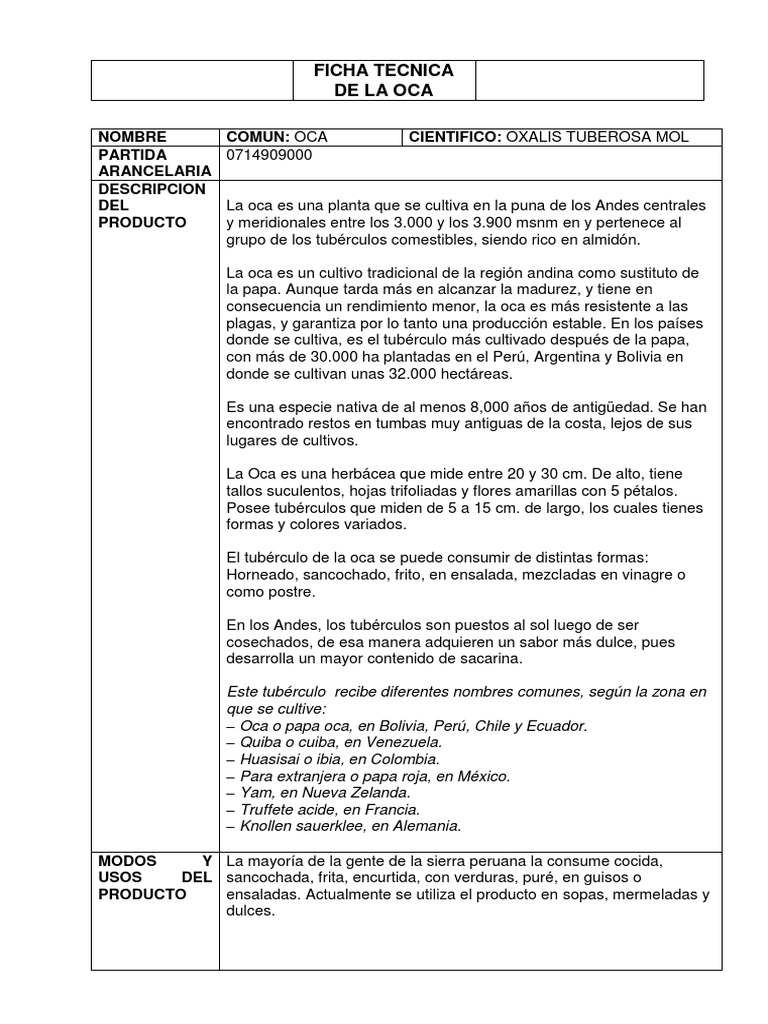 Huancayo; y en Ecuador en Quito. Las variedades de OCA ms
