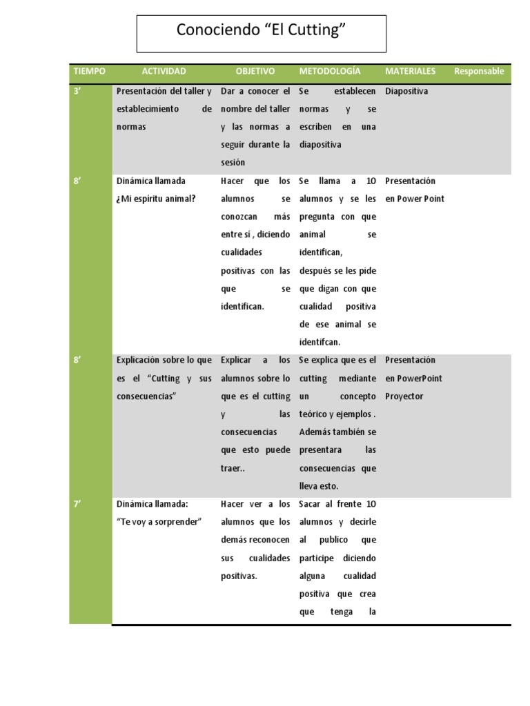 TIEMPO ACTIVIDAD OBJETIVO METODOLOGA MATERIALES Responsable