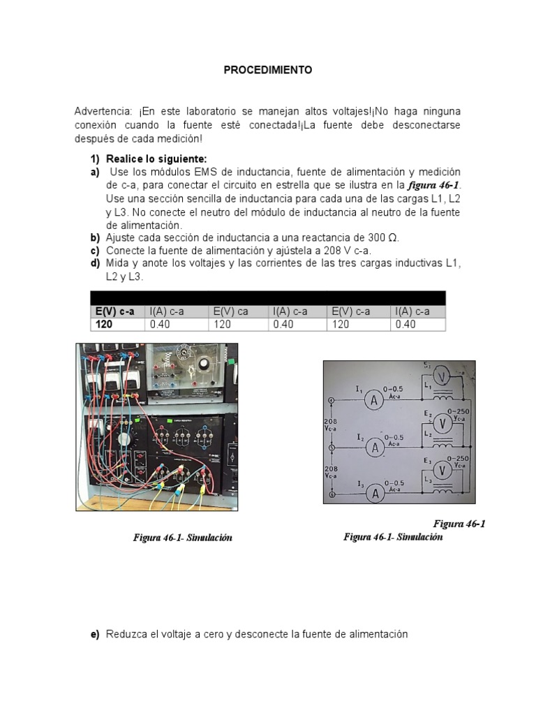 d) Mida y anote los voltajes y las corrientes de las tres cargas inductivas L1,