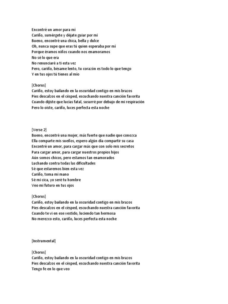 Cario, estoy bailando en la oscuridad contigo en mis brazos