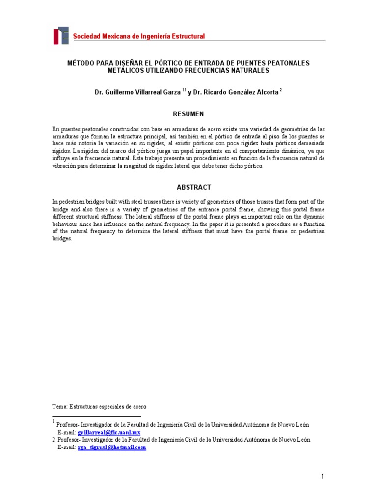 diseo del marco portal con base a la frecuencia natural del puente.