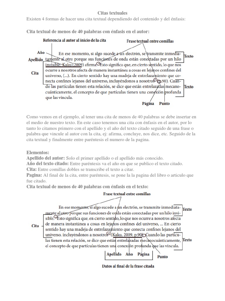 Cita textual de menos de 40 palabras con nfasis en el texto: