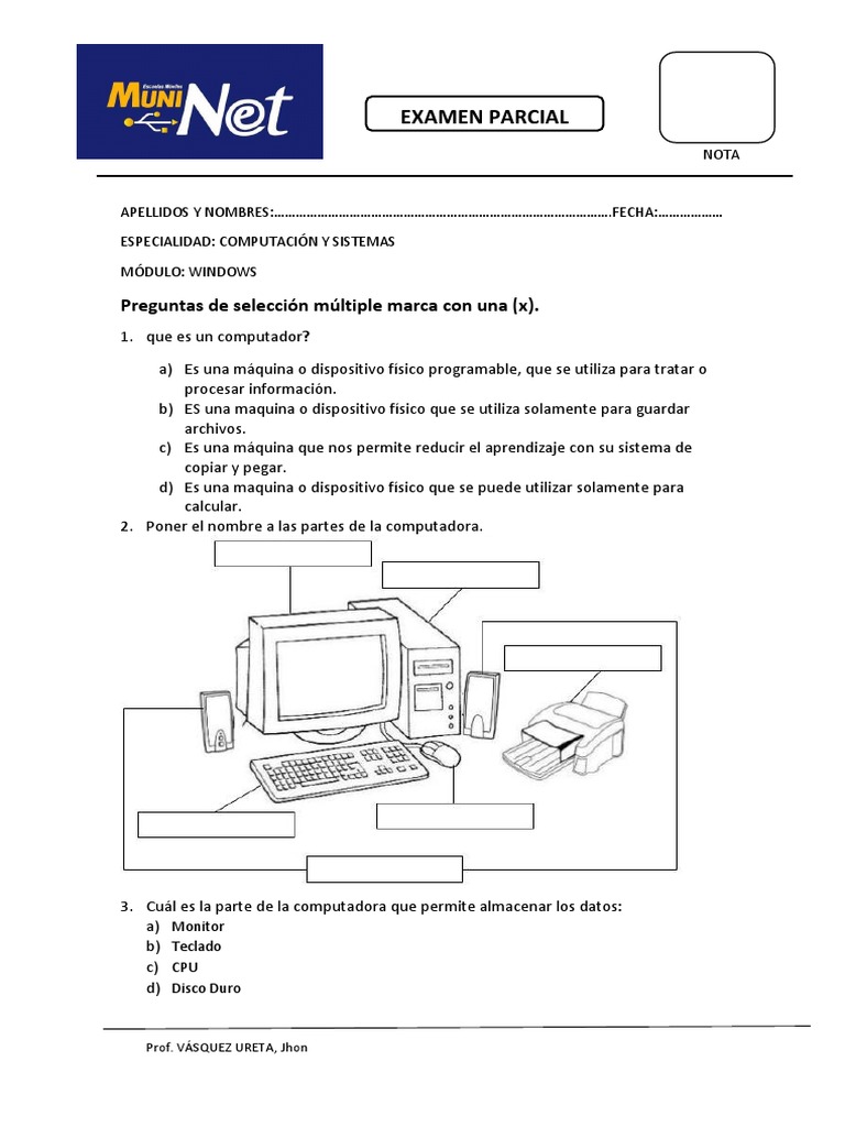 3. Cul es la parte de la computadora que permite almacenar los datos: