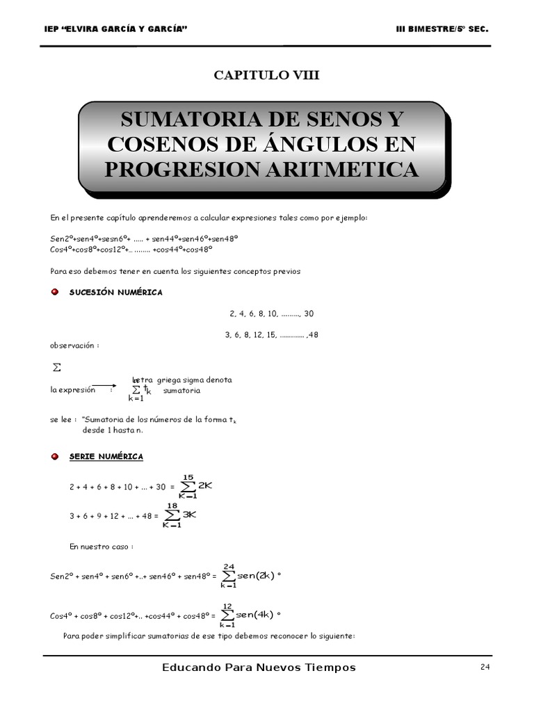 Sen2 + sen4 + sen6 +..+ sen46 + sen48 = sen(2k)