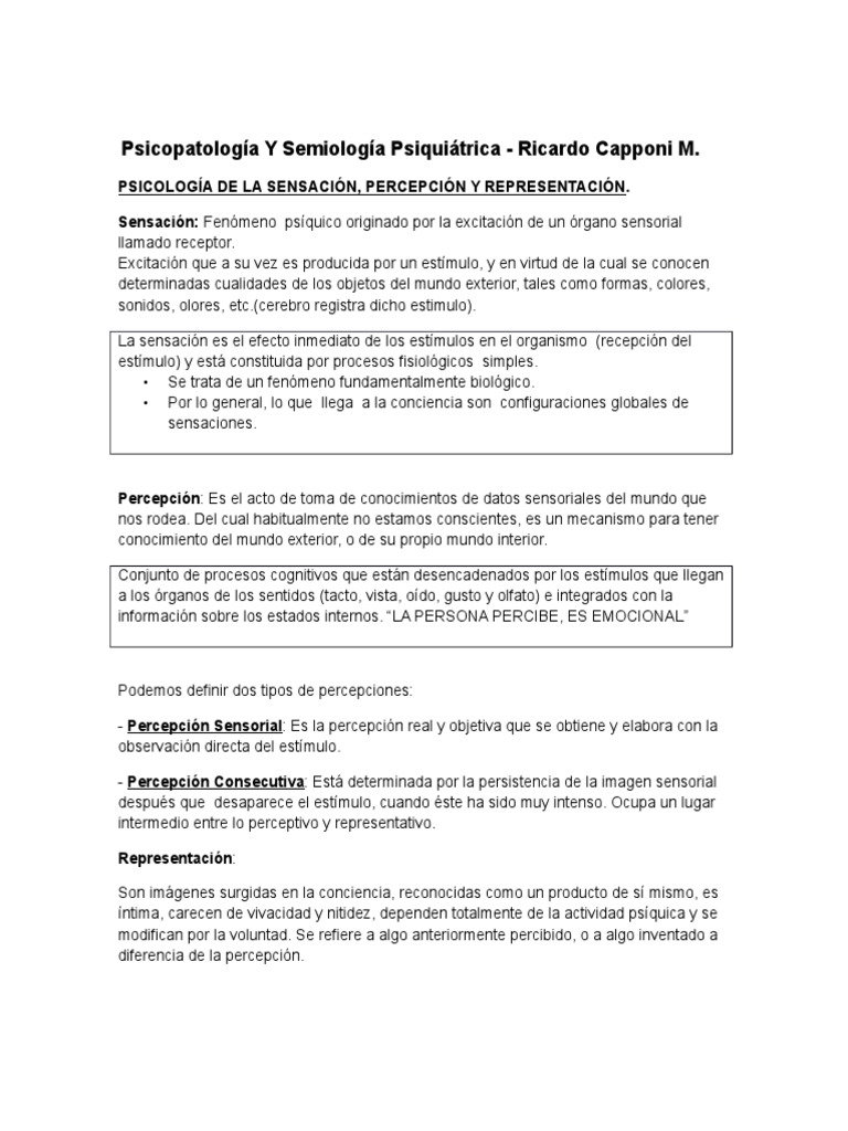 PSICOPATOLOGA DE LA SENSACIN, PERCEPCIN Y REPRESENTACIN.