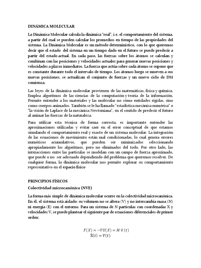 Las leyes de la dinmica molecular provienen de las matemticas, fsica y qumica.