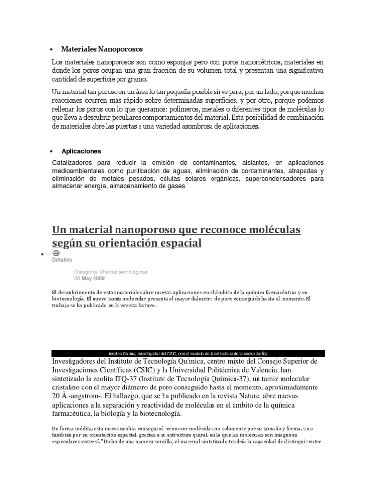 Los materiales nanoporosos son como esponjas pero con poros nanomtricos, materiales en