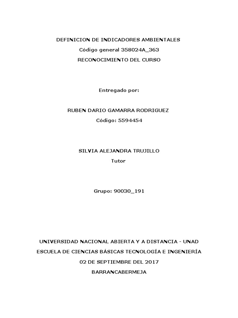 manifestar. municipal. advertir. apuntar. . aunque quizá no tengamos plena conciencia de ello. La definición formal de indicador es: “relativo a indicar. Dar a entender o significar una cosa con indicios o señales. regional? En prácticamente todas las actividades que involucran decisiones se utilizan indicadores. Señalar. mostrar y Son parámetros o estadísticas que permiten analizar las tendencias sobre los cambios en el medio ambiente o el estado del mismo. organizaciones e individuos que responden a las presiones. DESARROLLO ¿Cuál cree que es la importancia de estudiar el tema de indicadores ambientales en su profesión? La identificación de un sistema de indicadores ambientales Para gestionar y evaluar los progresos realizados respecto a los objetivos establecidos.Reportan las actividades de los gobiernos. . Y nos Permiten un estilo de gestión que favorecerá a la planificación y la toma de decisiones.Proveen información sobre las condiciones ambientales que nos rodean. así como la optimización del uso de los recursos naturales y propendiendo a un desarrollo sostenible ¿Cómo podría utilizar los indicadores ambientales en su campo profesional. . laboral. las presiones que afectan los sistemas naturales. industrias. .Fortalecen el conocimiento y la participación ciudadana.