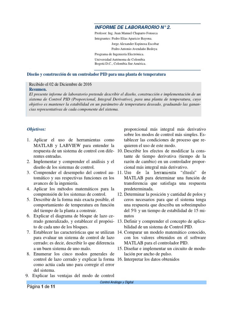 diseo de los sistemas de control. cional ms integral ms derivativo.
