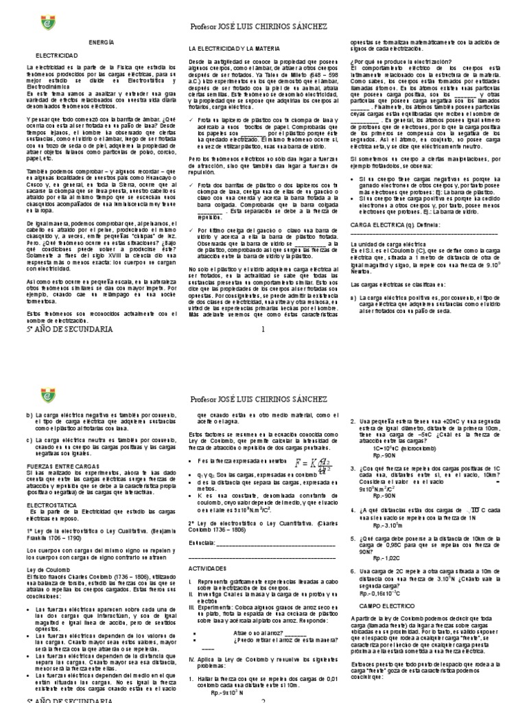 - Si un cuerpo tiene carga negativa es porque ha propia (positiva o negativa) de las cargas que interactan. A Estos factores se resumen en la ecuacin conocida