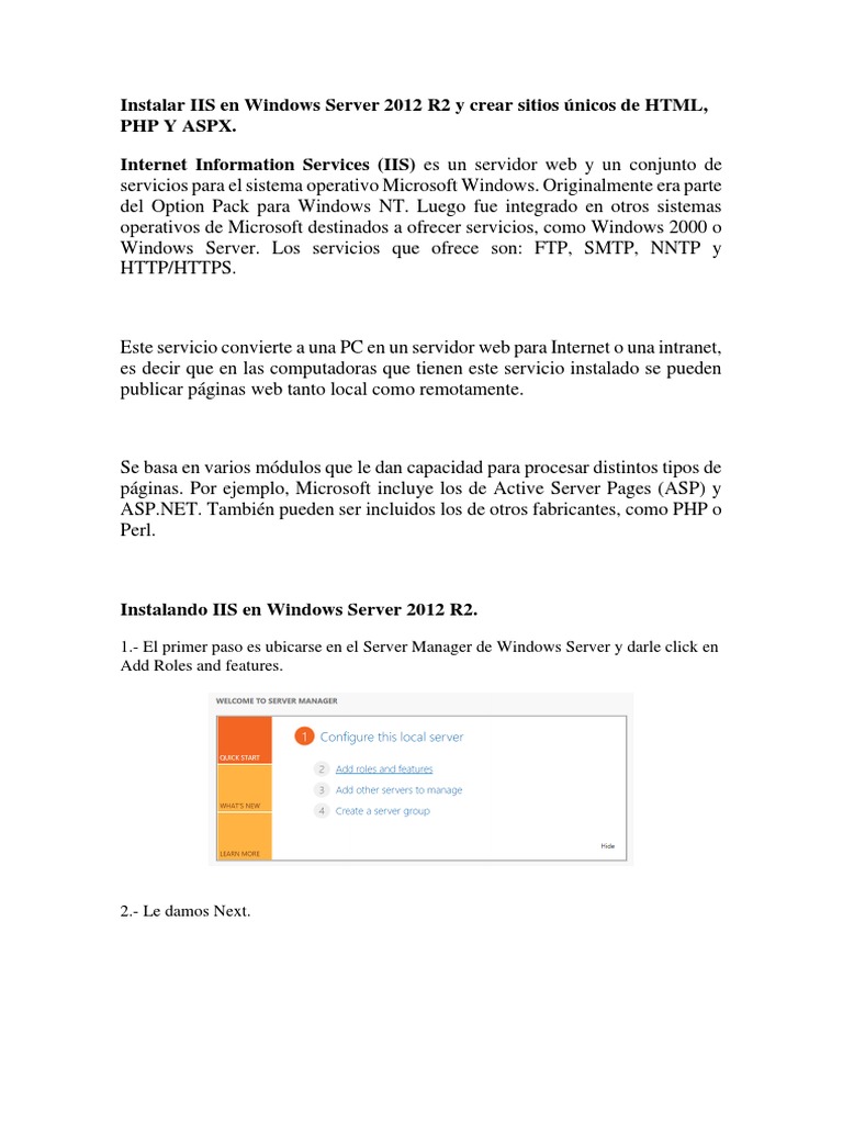 Instalar IIS en Windows Server 2012 R2 y crear sitios nicos de HTML,