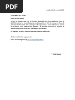 Mediante la presente saludo a su persona, desendole xitos en sus funciones, el