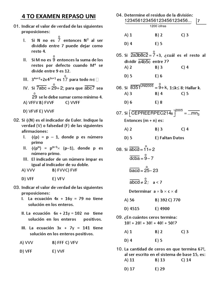 01. Indicar el valor de verdad de las siguientes 1200 cifras