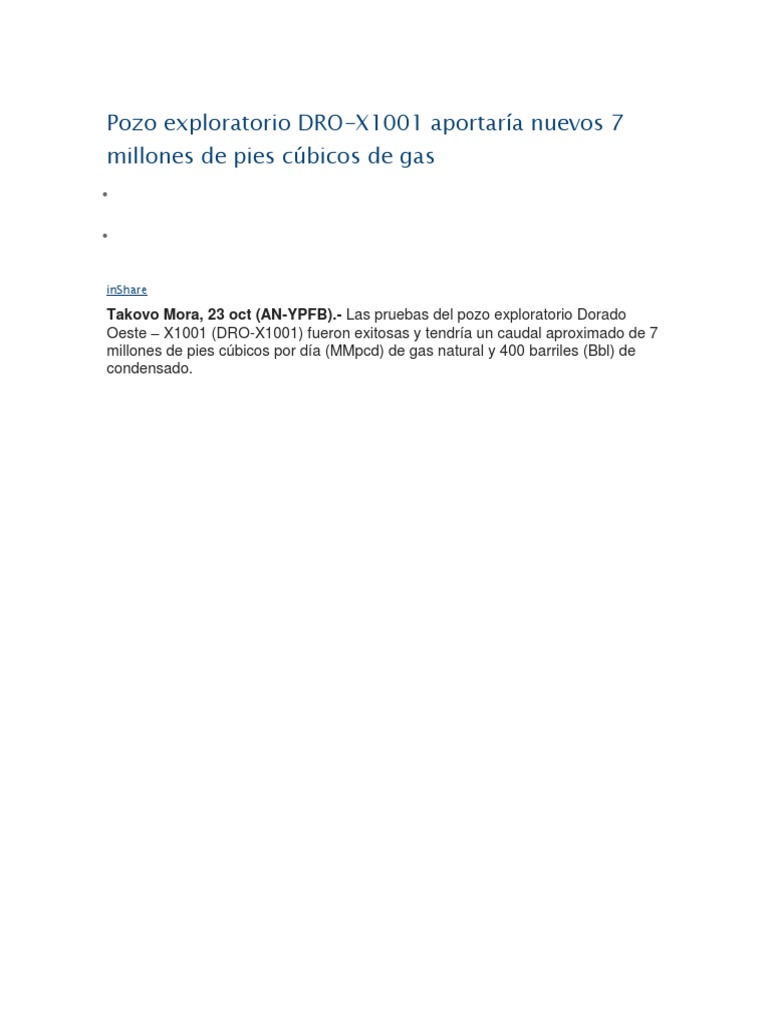 millones de pies cbicos por da (MMpcd) de gas natural y 400 barriles (Bbl) de