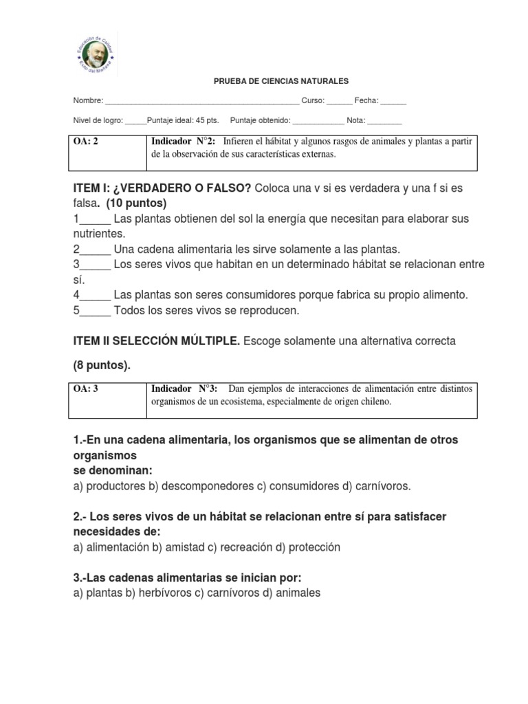 Prueba de Ciencias Naturales Cadena Alimentaria