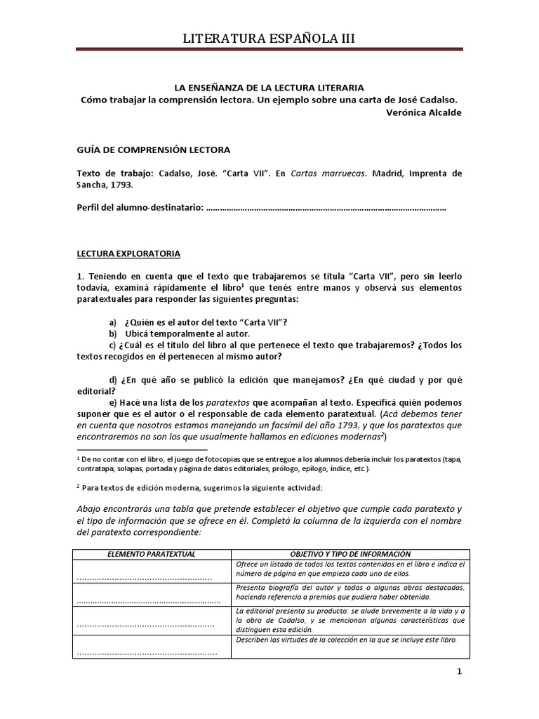 Cmo trabajar la comprensin lectora. Un ejemplo sobre una carta de Jos Cadalso.