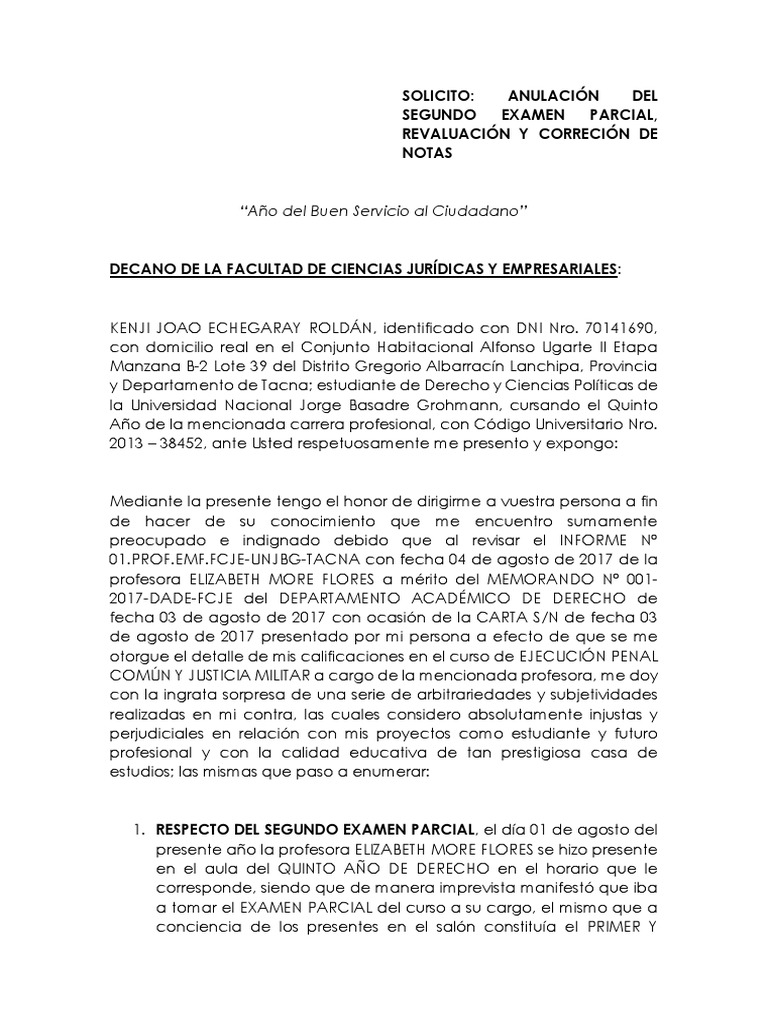 molest y expres que el casillero correspondiente al examen