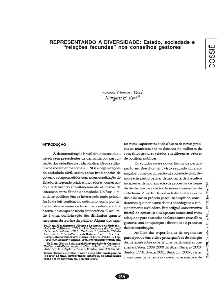 Rentao; FUKS, Mario, (Org.). Democracia: teoria e prti- 2004. p.95-130.