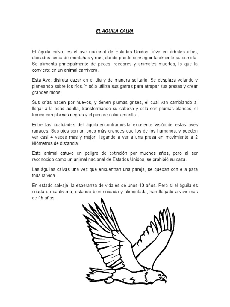 El guila calva, es el ave nacional de Estados Unidos. Vive en rboles altos,