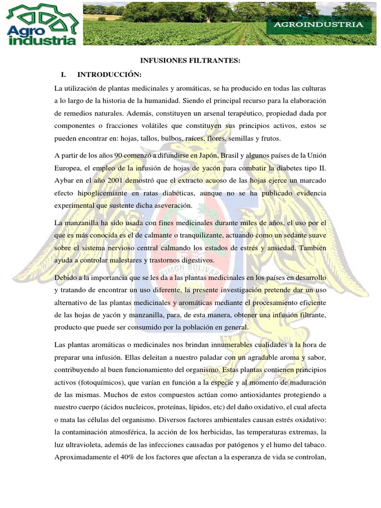 de las hojas de yacn y manzanilla, para, de esta manera, obtener una infusin filtrante,
