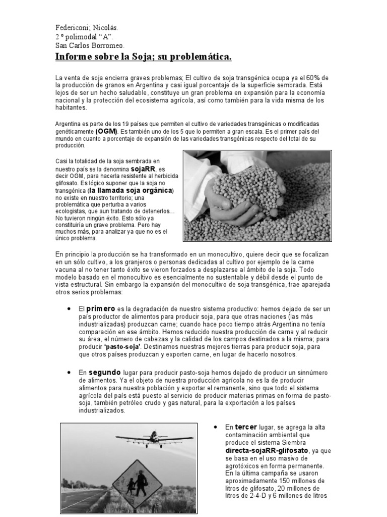 vista estructural. Sin embargo la expansión del monocultivo de soja transgénica, trae aparejada