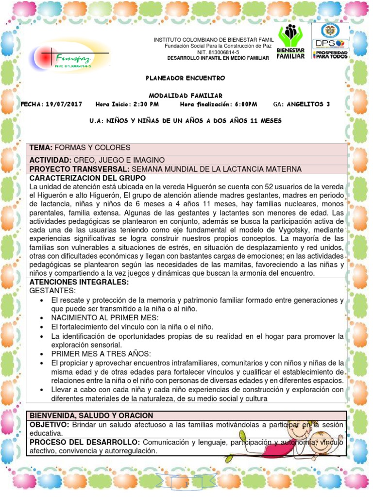 OBJETIVO: Brindar un saludo afectuoso a las familias motivndolas a participar en la sesin