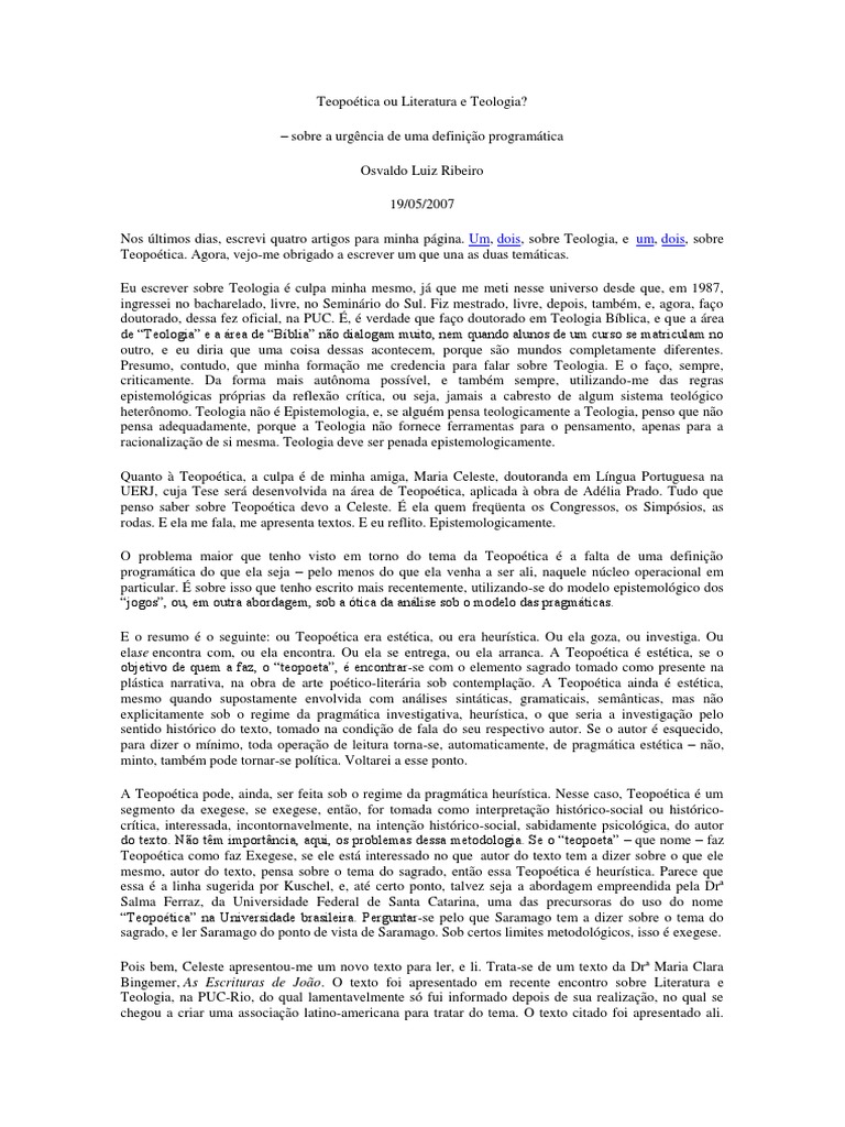 todos manejados sob o regime da Teopotica ou da Literatura e Teologia, mas mutuamente